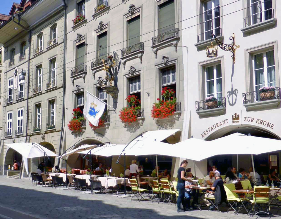 We contemplated stopping for a drink one of Bern’s five-star hotels. The Sky Terrace of the Hotel Schweizerhof has a 360 degree view of the city and the Bellevue Bar at the Bellevue Palace Hotel is where politicians make deals and celebrities might be spotted. Queen of England, Sophia Loren, and Charlie Chaplin are but a few who stayed at this official guesthouse of the Swiss government.