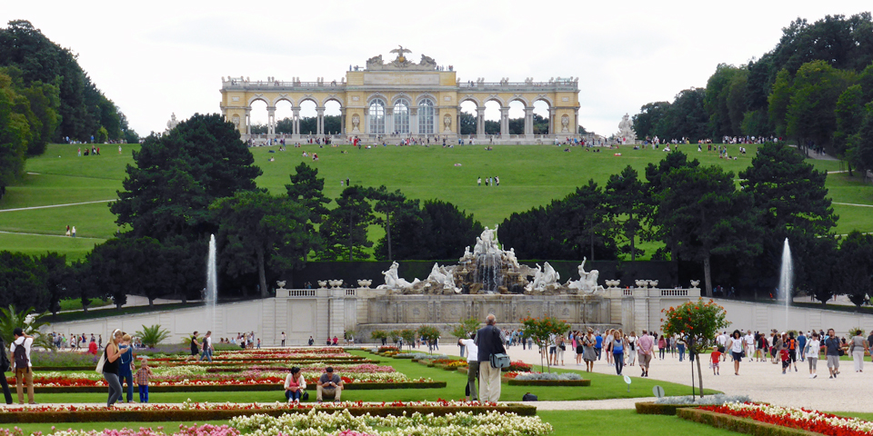 gardens, fountain, and gloriette, Schonbrunn Palace, Vienna