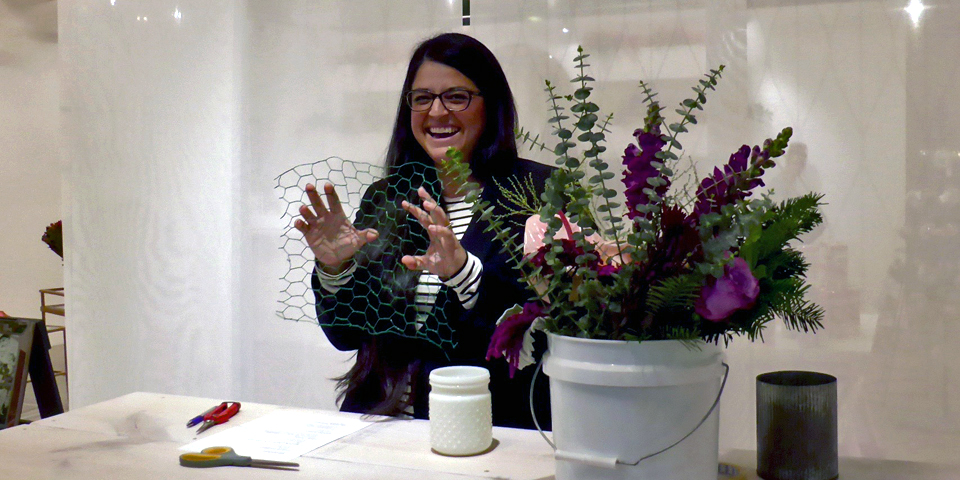 Ashley Mauricio-Flores with chicken wire at the Vintage Bouquet Bar