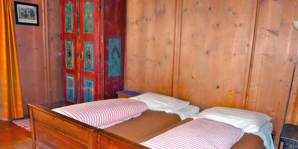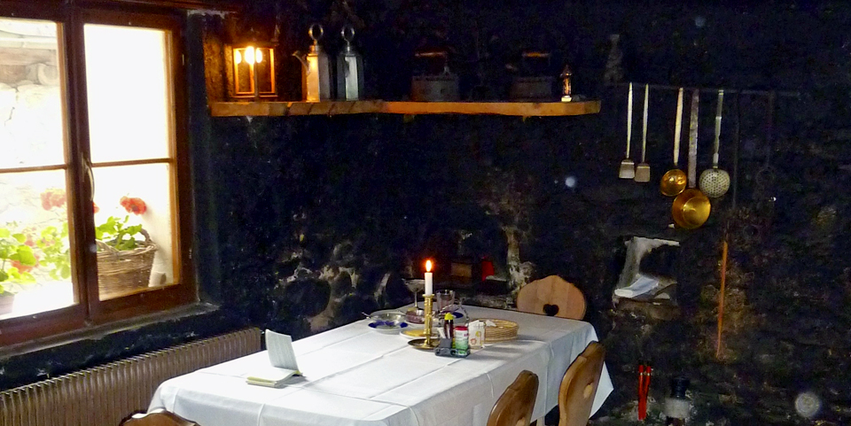 Meals are served in a room with walls of fragrant local pine known as arven (dschember in Romansch) and are prepared using local foods, including vegetables from the garden. Arrive early for breakfast and you may get the table in the historic kitchen.