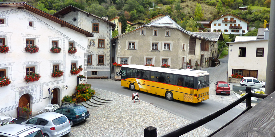 We took the Postbus from Müstair to Fuldera, where we waited for the little local bus up to the tiny village of Lü so we could meet them.